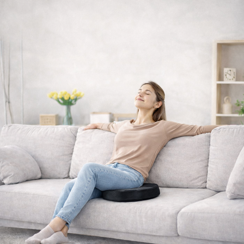 CushyErgo vous accompagne partout. Au bureau, en télétravail, en voiture, en fauteuil roulant ou même à la maison, il transforme instantanément n’importe quelle surface en assise plus stable et plus supportée. Léger et facile à transporter, il devient rapidement un indispensable au quotidien.